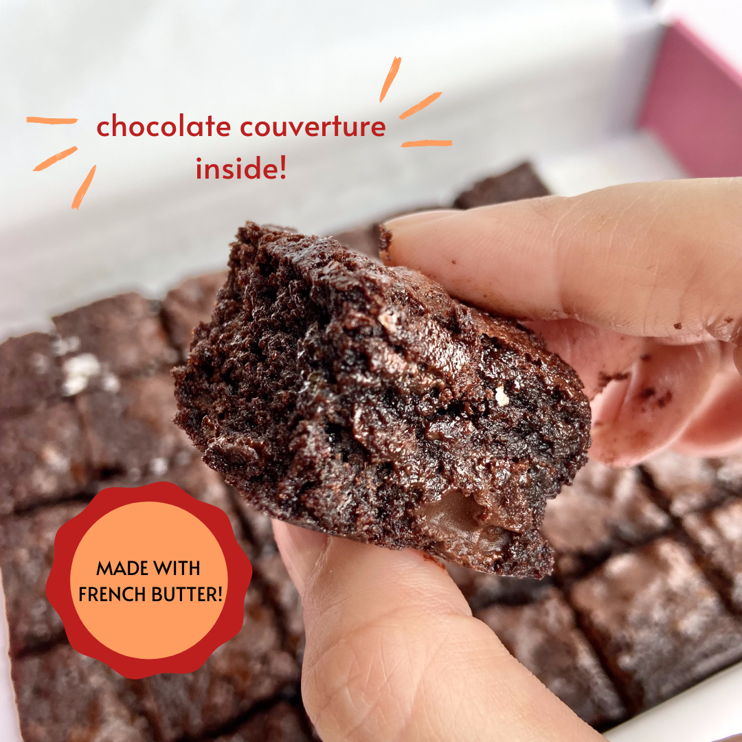 We use a block of french butter for each tray of brownie and filled with chocolate couverture (the real deal).