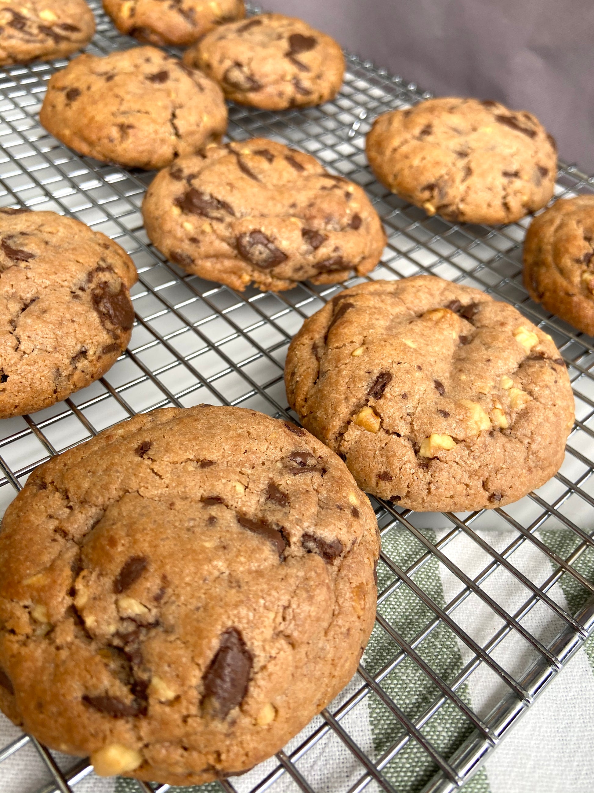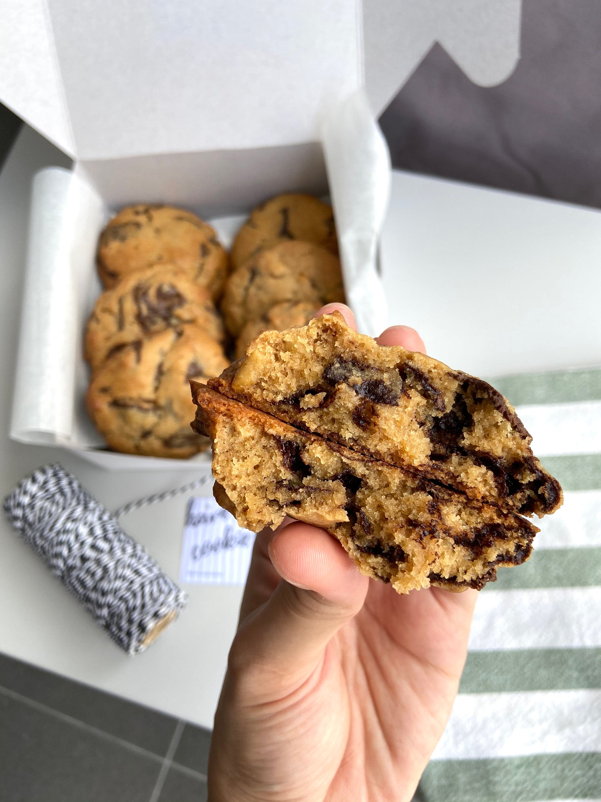 Big, thick cookie, crispy golden brown on the outside with a soft center inside. To die for!